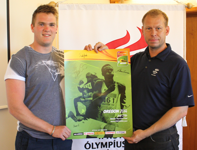 30.07.2014Hilmar Örn Jónsson, keppandi í sleggjukasti, kom færandi hendi á skrifstofu ÍSÍ í dag.