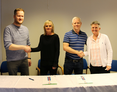 Á myndinni má sjá þau Örn Helgason, formann TKÍ, Jón Ólaf Sigurðsson, gjaldkera TKÍ, Lilju Sigurðardóttur, formann Afrekssjóðs ÍSÍ og Líney Rut Halldórsdóttur, framkvæmdastjóra ÍSÍ.